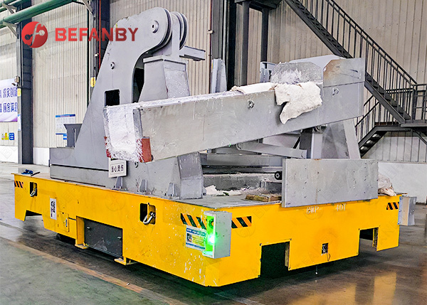Kereta transfer tanpa jalur memiliki fungsi miring otomatis, membuatnya sangat cocok untuk mengangkut bahan-bahan suhu tinggi dan berat seperti baja cair dan gelas.Desainnya memastikan keamanan dan efisiensi selama penanganan bahan.
